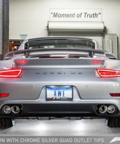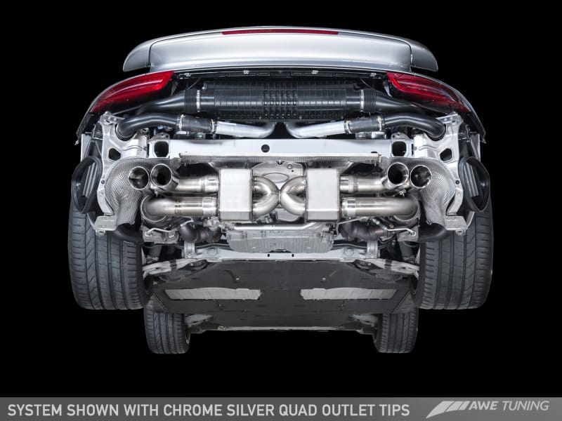 AWE Tuning Porsche 991.1 Turbo Performance Exhaust and High-Flow Cats – Silver Quad Tips