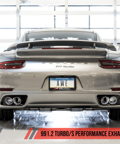 AWE Tuning Porsche 991.2 Turbo Performance Exhaust and High-Flow Cat Sections – Silver Quad Tips