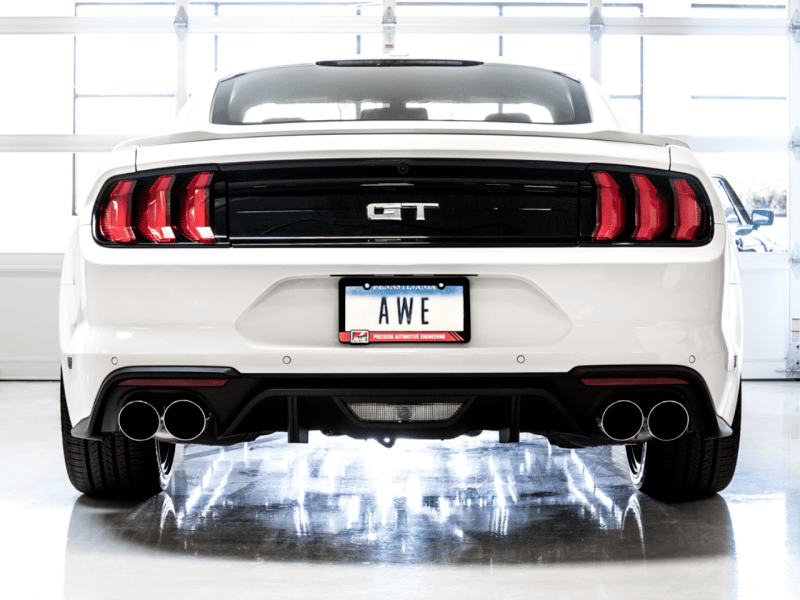 AWE Tuning 2018+ Ford Mustang GT (S550) Cat-back Exhaust – Touring Edition (Quad Chrome Silver Tips)