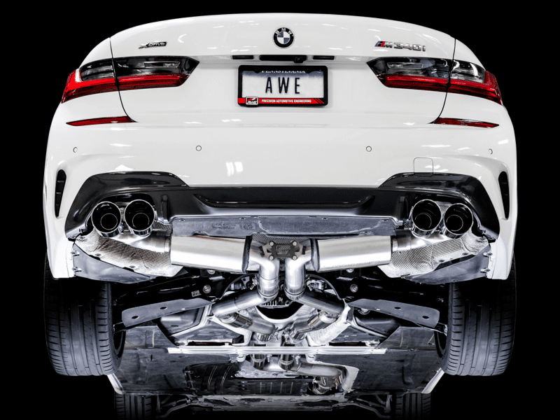 AWE Tuning 2019+ BMW M340i (G20) Resonated Touring Edition Exhaust – Quad Diamond Black Tips