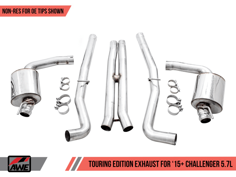 AWE Tuning 15+ Dodge Challenger 5.7 Touring Edition Exhaust – Non-Resonated – Stock Tips