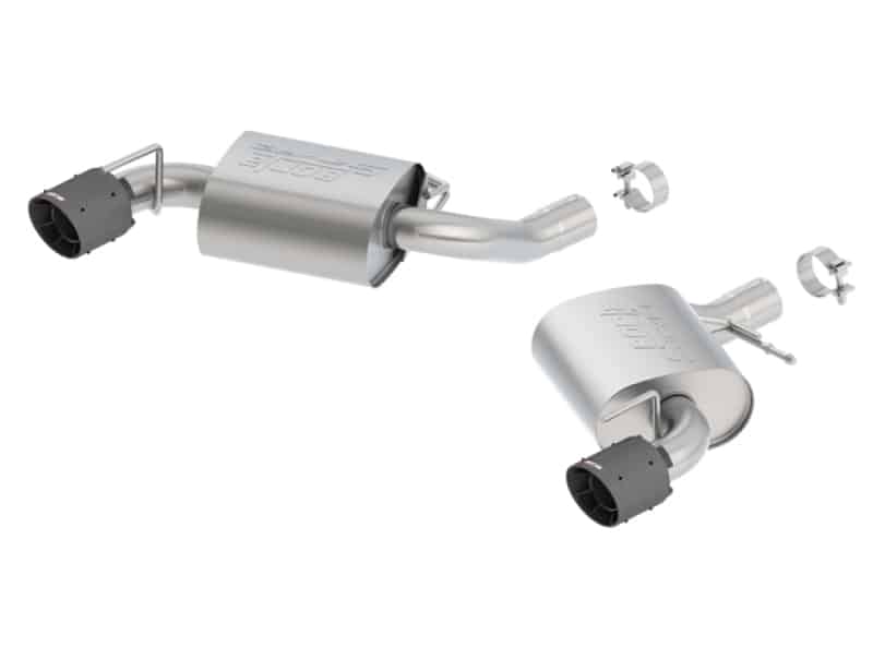 This system is for vehicles that come from the factory with single tips are NOT equipped with NPP (dual mode exhaust). It features unique Borla carbon fiber tips with black anodized centers. Borla Cat-Back And Axle-back exhaust systems feature patented straight-through and multi-core technology to unleash hidden horsepower. Increased exhaust velocity adds power, driving excitement, fuel economy, and the distinctive Borla Sound of Power respected by motoring enthusiasts everywhere. Each system is built from premium T-304 stainless steel, superior to T-400 series knockoffs (such as 409), to give you the absolute best in performance and durability. Ultra-smooth mandrel bends ensure maximum flow & power, and precision computer-controlled CNC manufacturing ensures an accurate fit. Best of all, Borla stands behind every system with a Million-Mile Warranty. Just what you?d expect from the world?s most experienced (and most winning) exhaust brand.