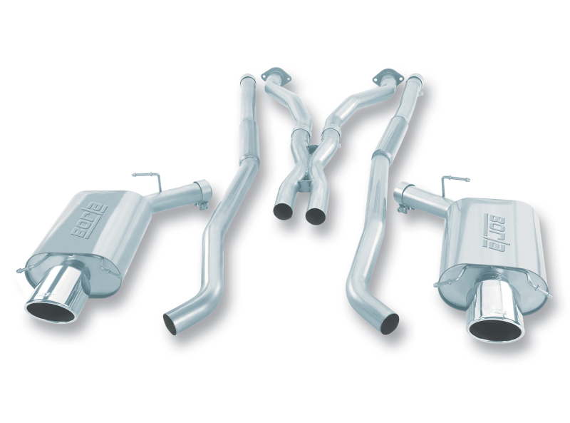 Borla Performance Industries? RD Staff has combined its knowledge of professional racing, the Corvette Gen. III, LS-1 V8 engine and high-end luxury sports cars to design another winner for the Cadillac CTS Series. The CTS-V has raised the bar for luxury sports touring vehicles with a true balance of outstanding performance, sports handling and Cadillac luxury, and Borla?s tuned exhaust delivers the smooth sounds of performance without being offensive to the occupants. Borla?s 26-year heritage once again has given us an upper hand. Borla, the exhaust system of choice for the Bondurant School of High Performance Driving, uses as base race vehicles the Corvette and Cadillac CTS and relies on Borla. This system (Part #140126) for the CTS-V is a blend of increased flow and performance with quality sound attenuation only available from Borla. As you?ve come to expect, the Borla system is fabricated from full aircraft quality high quality T-304 mandrel bent stainless steel with careful effort being exercised to make a true bolt-on system. The Corvette power plant maintains status as a true performance icon, while the Cadillac has gained significant recognition in the world race arena. This amalgamation is what Borla is all about. Kind of what made hot rodding so popular — blending old school with new. Big power, stick shift or automatic, with a sophisticated quality luxury car?look out AMG and M5! Borla Performance Industries, the original pioneers of aerospace-grade high quality T-304 stainless steel (superior to 409 or aluminized steel) free-flow exhaust utilizing patented award and race winning technology to deliver quality, sound, performance gains and enhanced fuel economy ? all with an easy bolt-on installation. All Borla street products carry the famous Borla written million-mile warranty.