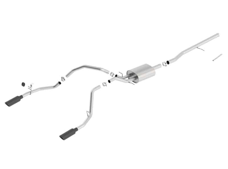 Borla 14 Sierra 1500 C/B S-Type Exh/2.75in Into Dual 2.25in Out 4in Split Rear Exit-Black Chrome