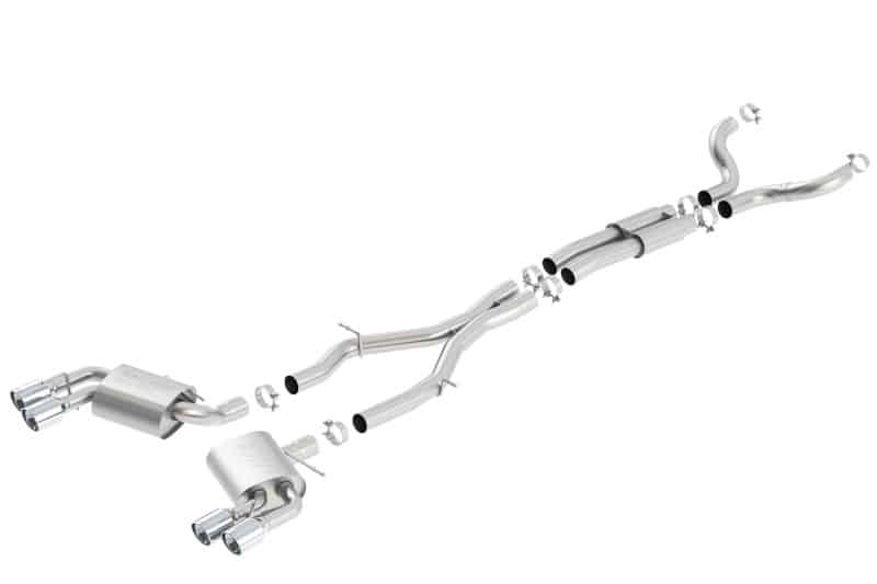 This system has dual tips and will fit the vehicles equipped with Dual Mode Exhaust (NPP) but it does NOT include Dual Mode valves. This system is for vehicles that come from the factory with single tips and are NOT equipped with NPP (dual mode exhaust). Borla Cat-Back And Axle-Back multi-core technology to unleash hidden horsepower. Increased exhaust velocity adds power, driving excitement, fuel economy, and the distinctive Borla Sound of Power respected by motoring enthusiasts everywhere. Each system is built from premium T-304 stainless steel, superior to T-400 series knockoffs (such as 409), to give you the absolute best in performance and durability. Ultra-smooth mandrel bends ensure maximum flow & power, and precision computer-controlled CNC manufacturing ensures an accurate fit. Best of all, Borla stands behind every system with a Million-Mile Warranty. Just what you?d expect from the world?s most experienced (and most winning) exhaust brand. Features a durable high-temperature Ceramic Black finish on the tips.