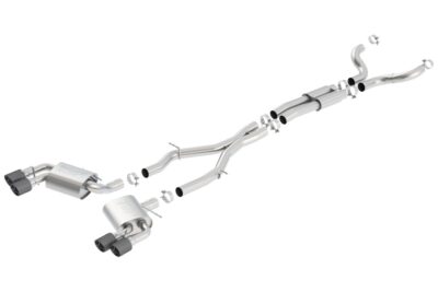 This system has dual carbon fiber tips. It will fit the vehicles equipped with Dual Mode Exhaust (NPP) but it does NOT include Dual Mode valves. It is intended for vehicles with significant upgrades that require a larger diameter exhaust. It is recommended for use with Long Tube Headers. AFM valves are NOT included. A check engine light will be activated on vehicles equipped with AFM. Borla Cat-Back And Axle-Back exhaust systems feature patented straight-through and multi-core technology to unleash hidden horsepower. Increased exhaust velocity adds power, driving excitement, fuel economy, and the distinctive Borla Sound of Power respected by motoring enthusiasts everywhere. Each system is built from premium T-304 stainless steel, superior to T-400 series knockoffs (such as 409), to give you the absolute best in performance and durability. Ultra-smooth mandrel bends ensure maximum flow & power, and precision computer-controlled CNC manufacturing ensures an accurate fit. Best of all, Borla stands behind every system with a Million-Mile Warranty. Just what you?d expect from the world?s most experienced (and most winning) exhaust brand.