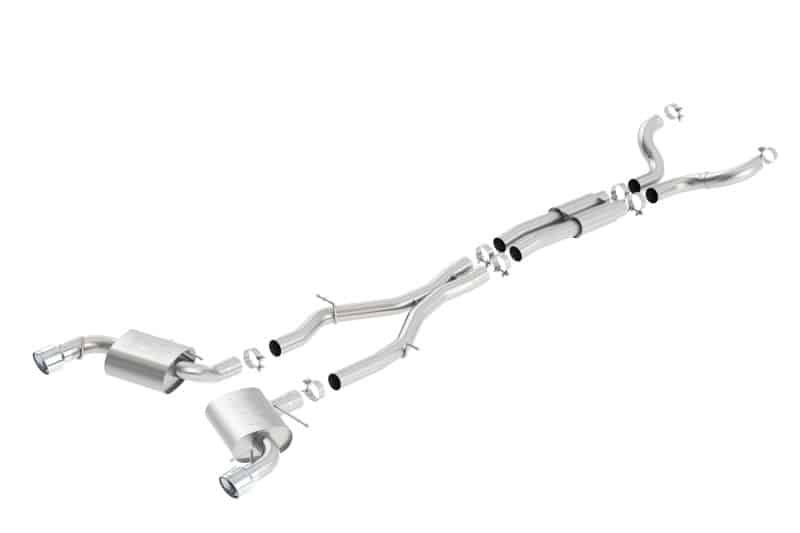 This system is intended for vehicles with significant upgrades that require a larger diameter exhaust. It is recommended for use with Long Tube Headers. AFM valves are NOT included. A check engine light will be activated on vehicles equipped with AFM. Borla Cat-Back And Axle-Back multi-core technology to unleash hidden horsepower. Increased exhaust velocity adds power, driving excitement, fuel economy, and the distinctive Borla Sound of Power respected by motoring enthusiasts everywhere. Each system is built from premium T-304 stainless steel, superior to T-400 series knockoffs (such as 409), to give you the absolute best in performance and durability. Ultra-smooth mandrel bends ensure maximum flow & power, and precision computer-controlled CNC manufacturing ensures an accurate fit. Best of all, Borla stands behind every system with a Million-Mile Warranty. Just what you?d expect from the world?s most experienced (and most winning) exhaust brand.