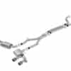 Borla Cat-Back And Axle-Back multi-core technology to unleash hidden horsepower. Increased exhaust velocity adds power, driving excitement, fuel economy, and the distinctive Borla Sound of Power respected by motoring enthusiasts everywhere. Each system is built from premium T-304 stainless steel, superior to T-400 series knockoffs (such as 409), to give you the absolute best in performance and durability. Ultra-smooth mandrel bends ensure maximum flow & power, and precision computer-controlled CNC manufacturing ensures an accurate fit. Best of all, Borla stands behind every system with a Million-Mile Warranty. Just what you?d expect from the world?s most experienced (and most winning) exhaust brand.