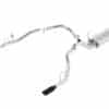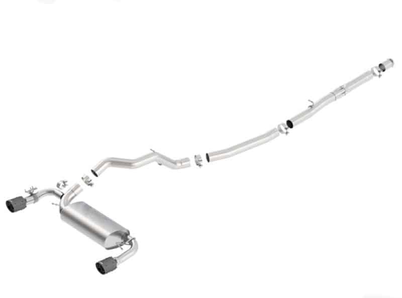 This system is equipped with a “Sound Suppressing Valve” simulator. This avoids any warning lights on the dash while providing maximum flow at all times. Equipped with carbon fiber tips with black anodized centers. Borla Cat-Back And Axle-Back multi-core technology to unleash hidden horsepower. Increased exhaust velocity adds power, driving excitement, fuel economy, and the distinctive Borla Sound of Power respected by motoring enthusiasts everywhere.