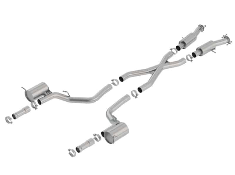 Borla Cat-Back And Axle-Back multi-core technology to unleash hidden horsepower. Increased exhaust velocity adds power, driving excitement, fuel economy, and the distinctive Borla Sound of Power respected by motoring enthusiasts everywhere. Each system is built from premium T-304 stainless steel, superior to T-400 series knockoffs (such as 409), to give you the absolute best in performance and durability. Ultra-smooth mandrel bends ensure maximum flow & power, and precision computer-controlled CNC manufacturing ensures an accurate fit. Best of all, Borla stands behind every system with a Million-Mile Warranty. Just what you?d expect from the world?s most experienced (and most winning) exhaust brand.