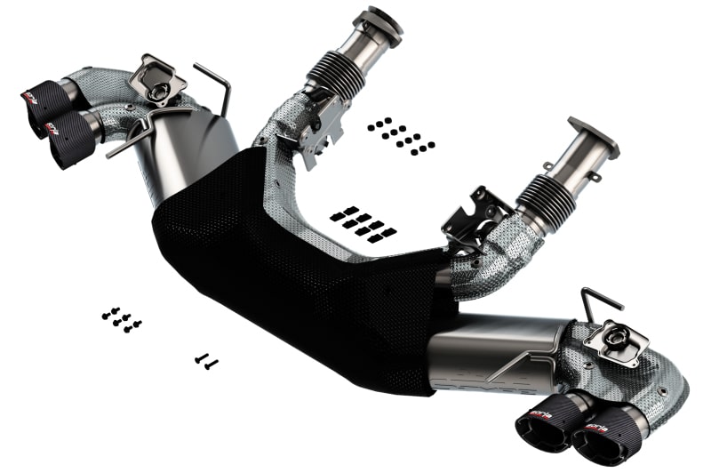 Developing systems for the C8 Corvette presented Borla engineers with unique challenges, but our team was up to the challenge. Great care was taken to ensure the integrity and function of the system as well as the vehicle itself. Part number 140838 includes both AFM and NPP dual mode exhaust valves. The S-Type sound level delivers an aggressive, yet balanced sound with a deep tone. Our exhaust provides a more exciting driving experience without any drone. It features our Polyphonic Harmonizer and SwitchFire? technology. Borla’S Polyphonic Harmonizer Technology utilizes patented units that contain pipes of different diameters and lengths to create multiple exhaust notes that harmonize to deliver a clean, rich, full-bodied sound. Completely eliminating the turbulent center intersection of a standard X-Pipe, Borla’S patented SwitchFire? design truly blends the combustion pulses from both sides of the engine for improved performance and a custom aggressive sound. Strategically placed heat shielding is included to prevent exhaust heat damage and protect your Corvette. It comes with 4″ Carbon Fiber tips with bright centers and is available with Polished T-304 stainless steel tips part number 140839 or Black Chrome on T-304 stainless steel tips, part number 140839BC. The system is constructed using T-304 stainless steel and is backed by our Million Mile Warranty. Note: After installation of the Borla system, the controllers for the AFM and NPP valves in the exhaust system should be re-calibrated according to GM Document ID 5406413. Borla recommends taking your car to the nearest Chevrolet dealer for exhaust valve recalibration services.