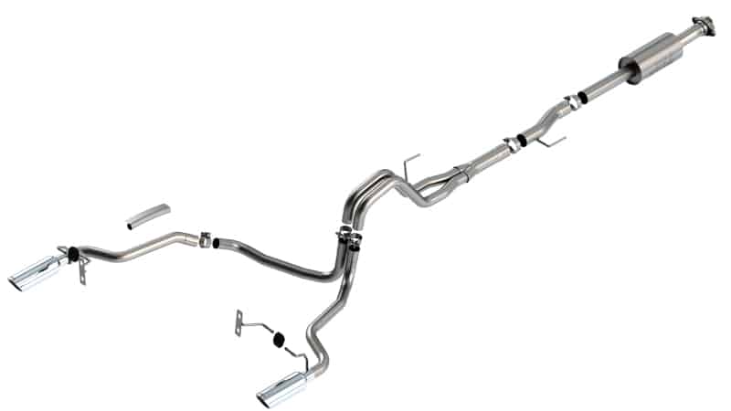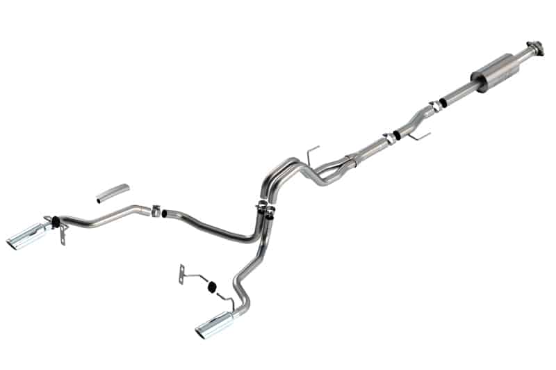 The Borla(r) Cat-Back(tm) system 140863 was specifically designed to enhance the power and sound of the Ford F-150 equipped with 2.7L and 3.5L engines. It includes bright chromed T-304 stainless steel tips and a split rear exit configuration. The entire system is made of T-304 stainless steel and utilizes computer numerical control (CNC) manufacturing techniques that ensure an accurate fit. This system features the “S-Type” sound that gives you an aggressive sound with no drone. It is also available with black chromed tips (part number 140863BC). There are additional systems available for the 2.7L and 3.5L F-150 that offer different options for sound level, tip finish and tip exits. All this is backed by our unsurpassed Million Mile Warranty., System Features:, Cat-Back(tm) System, Split Rear Exit, Bright Chrome On T-304 Stainless Steel Tips, S-Type Sound Level, T-304 Stainless Steel Construction, Bolt-On Installation, Million Mile Warranty