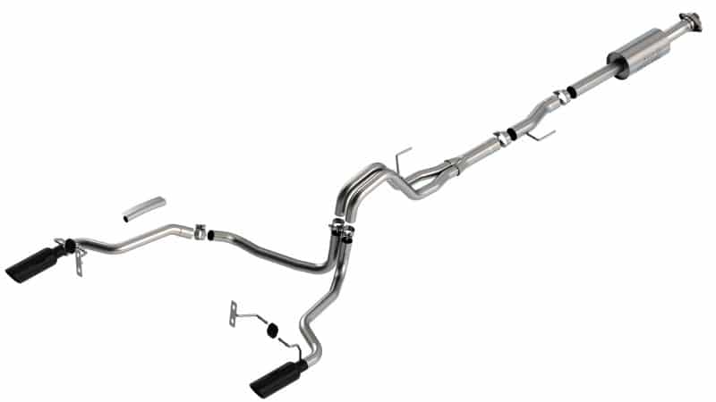 The Borla(r) Cat-Back(tm) system 140863BC was specifically designed to enhance the power and sound of the Ford F-150 equipped with 2.7L and 3.5L engines. It includes black chromed T-304 stainless steel tips and a split rear exit configuration. The entire system is made of T-304 stainless steel and utilizes computer numerical control (CNC) manufacturing techniques that ensure an accurate fit. This system features the “S-Type” sound that gives you an aggressive sound with no drone. It is also available with bright chromed tips (part number 140863). There are also systems available for the 2.7L and 3.5L F-150 that offer different options for sound level, tip finish and tip exits. All this is backed by our unsurpassed Million Mile Warranty., System Features:, Cat-Back(tm) System, Split Rear Exit, Black Chrome On T-304 Stainless Steel Tips, S-Type Sound Level, T-304 Stainless Steel Construction, Bolt-On Installation, Million Mile Warranty