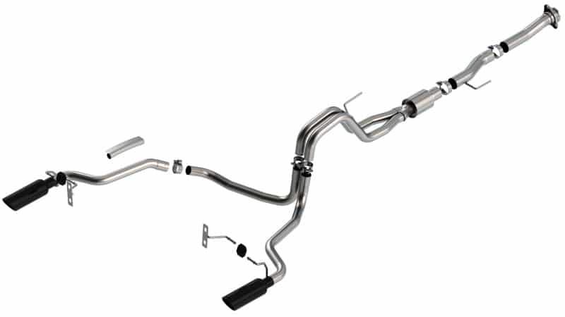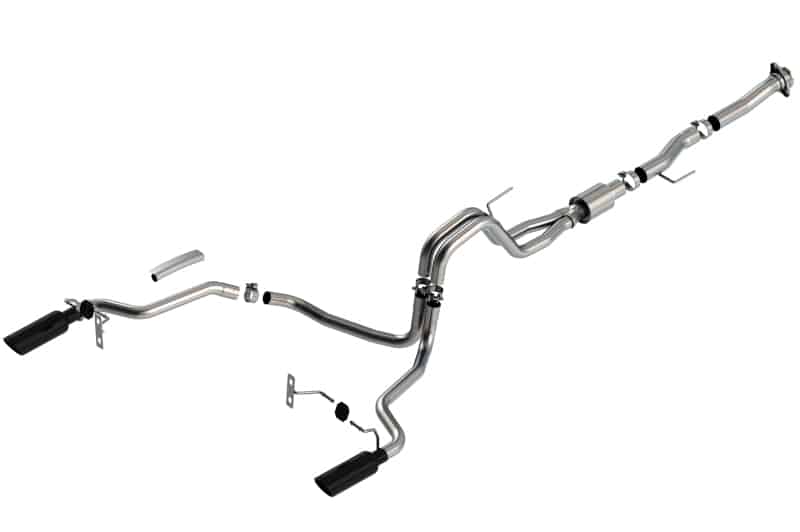The Borla(r) Cat-Back(tm) system 140869BC was specifically designed to enhance the power and sound of the Ford F-150 equipped with the 5.0L V8 engine. It includes black chromed T-304 stainless steel tips and a split rear exit configuration. The entire system is made of T-304 stainless steel and utilizes computer numerical control (CNC) manufacturing techniques that ensure an accurate fit. This system features the “ATAK(r)” sound that gives you our most aggressive sound level with no drone. It is also available with bright chromed tips (part number 140869). There are additional systems available for the 5.0L F-150 that offer different options for sound level, tip finish and tip exits. All this is backed by our unsurpassed Million Mile Warranty., System Features:, Cat-Back(tm) System, Split Rear Exit, Black Chrome On T-304 Stainless Steel Tips, ATAK(r) Sound Level, T-304 Stainless Steel Construction, Bolt-On Installation, Million Mile Warranty