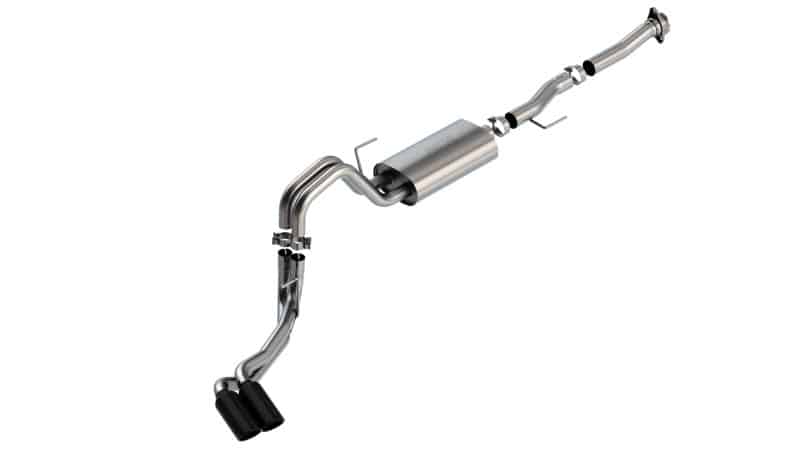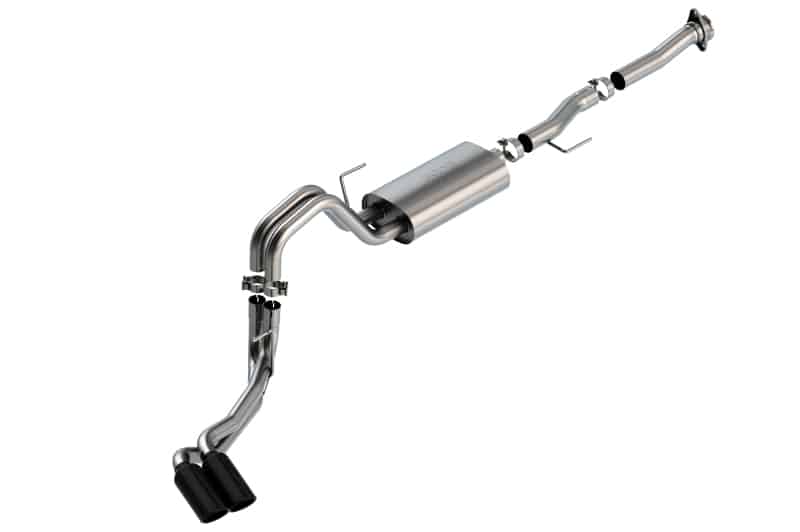 The Borla(r) Cat-Back(tm) system 140876BC was specifically designed to enhance the power and sound of the Ford F-150 equipped with the 5.0L V8 engine. It includes black chromed T-304 stainless steel tips and a dual side exit configuration. The entire system is made of T-304 stainless steel and utilizes computer numerical control (CNC) manufacturing techniques that ensure an accurate fit. This system features the “S-Type” sound that gives you an aggressive sound with no drone. It is also available with bright chromed tips (part number 140876). There are additional systems available for the 5.0L F-150 that offer different options for sound level, tip finish and tip exits. All this is backed by our unsurpassed Million Mile Warranty., System Features:, Cat-Back(tm) System, Dual Side Exit, Black Chrome On T-304 Stainless Steel Tips, S-Type Sound Level, T-304 Stainless Steel Construction, Bolt-On Installation, Million Mile Warranty