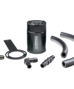 CORSA Performance’s oil catch cans are the latest in a line of performance parts designed to maximize vehicle performance and longevity. Made from 6061 aluminum and featuring a multi-stage oil separation system, CORSA Performance oil catch cans work to eliminate blow-by of gas, water, oil vapors and particulates from the airpath. By reducing the impacts of blow-by, oil catch cans prevent damage to sensitive intake components and helps reduce carbon build-up on valves that over time reduce engine performance. Each vehicle specific oil catch can has been designed with OEM style quick disconnect fittings, premium automotive-grade hoses and upgraded components to ensure your vehicle runs at peak performance. Through careful design CORSA engineers have mounted each oil catch can in an easily accessible yet safe location allowing for ease of serviceability.
