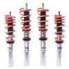 H&R Street Performance Coil Overs are the perfect suspension solution for discerning drivers?from daily drivers to serious tuners?who can appreciate awesome handling and superb ride comfort. Each coil over shock is custom valved to work in conjunction with a precision-engineered progressive rate spring, creating a finely tuned suspension system. The fully threaded shock body allows for adjustable vehicle height. This feature helps balance vehicle weight, resulting in a lower center of gravity and improved performance and control.