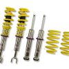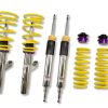 The KW Variant 1 INOX-LINE coilover kit is our entry point into our street performance lineup. The high-quality INOX-LINE stainless steel coilover struts, corrosion resistant springs, bumps stops and dampers that are optimally tuned by our engineers. The result is a balanced and sporty feel specific to each vehicle application designed for long lasting driving pleasure. With KW Variant 1 coilovers you can achieve maximum lowering within an approved lowering range that ensures a proper functioning suspension and adequate travel after your car is lowered. Even after years of use you can easily adjust the ride height thanks to the dirt resistant trapezoid thread and composite Adjustment -ollar. KW Variant 1 INOX-LINE coilover rewards the sporty driver with its pre-configured setup. For each vehicle, our engineers develop a specific damper setup and spring rate to increase the driving pleasure with an optimal balance of sportiness and practicality. As with all KW coilovers, the engineers at KW fine tune each application on the Nurburgring Nordschleife and at the KW 7-post chassis dynamics test center. Unlike a mass produced, generic coilover kit, KW coilovers are developed specifically for your vehicle. As a manufacturer, KW uses only its own resources, high quality components and the damper technology -hat was all developed in-house. With the KW Variant 1 coilovers, body roll will be reduced during compression giving you the benefit of a more genuine and direct sporty handling while driving. For over 20 years, KW automotive has been the market leader and driving innovation as a manufacturer of individual suspension solutions for the road and in all types of motorsports. No matter where in the world, gearheads, automobile manufacturers and reputable tuners rely on our KW coilovers made in Germany. With an application list comprising more than 4,600 options KW guarantees an outstanding selection backed by our Limited Lifetime Warranty.