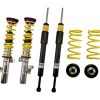 The KW Variant 1 INOX-LINE coilover kit is our entry point into our street performance lineup. The high-quality INOX-LINE stainless steel coilover struts, corrosion resistant springs, bumps stops and dampers that are optimally tuned by our engineers. The result is a balanced and sporty feel specific to each vehicle application designed for long lasting driving pleasure. With KW Variant 1 coilovers you can achieve maximum lowering within an approved lowering range that ensures a proper functioning suspension and adequate travel after your car is lowered. Even after years of use you can easily adjust the ride height thanks to the dirt resistant trapezoid thread and composite Adjustment -ollar. KW Variant 1 INOX-LINE coilover rewards the sporty driver with its pre-configured setup. For each vehicle, our engineers develop a specific damper setup and spring rate to increase the driving pleasure with an optimal balance of sportiness and practicality. As with all KW coilovers, the engineers at KW fine tune each application on the Nurburgring Nordschleife and at the KW 7-post chassis dynamics test center. Unlike a mass produced, generic coilover kit, KW coilovers are developed specifically for your vehicle. As a manufacturer, KW uses only its own resources, high quality components and the damper technology -hat was all developed in-house. With the KW Variant 1 coilovers, body roll will be reduced during compression giving you the benefit of a more genuine and direct sporty handling while driving. For over 20 years, KW automotive has been the market leader and driving innovation as a manufacturer of individual suspension solutions for the road and in all types of motorsports. No matter where in the world, gearheads, automobile manufacturers and reputable tuners rely on our KW coilovers made in Germany. With an application list comprising more than 4,600 options KW guarantees an outstanding selection backed by our Limited Lifetime Warranty.