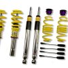 The KW Variant 1 INOX-LINE coilover kit is our entry point into our street performance lineup. The high-quality INOX-LINE stainless steel coilover struts, corrosion resistant springs, bumps stops and dampers that are optimally tuned by our engineers. The result is a balanced and sporty feel specific to each vehicle application designed for long lasting driving pleasure. With KW Variant 1 coilovers you can achieve maximum lowering within an approved lowering range that ensures a proper functioning suspension and adequate travel after your car is lowered. Even after years of use you can easily adjust the ride height thanks to the dirt resistant trapezoid thread and composite Adjustment -ollar. KW Variant 1 INOX-LINE coilover rewards the sporty driver with its pre-configured setup. For each vehicle, our engineers develop a specific damper setup and spring rate to increase the driving pleasure with an optimal balance of sportiness and practicality. As with all KW coilovers, the engineers at KW fine tune each application on the Nurburgring Nordschleife and at the KW 7-post chassis dynamics test center. Unlike a mass produced, generic coilover kit, KW coilovers are developed specifically for your vehicle. As a manufacturer, KW uses only its own resources, high quality components and the damper technology -hat was all developed in-house. With the KW Variant 1 coilovers, body roll will be reduced during compression giving you the benefit of a more genuine and direct sporty handling while driving. For over 20 years, KW automotive has been the market leader and driving innovation as a manufacturer of individual suspension solutions for the road and in all types of motorsports. No matter where in the world, gearheads, automobile manufacturers and reputable tuners rely on our KW coilovers made in Germany. With an application list comprising more than 4,600 options KW guarantees an outstanding selection backed by our Limited Lifetime Warranty.