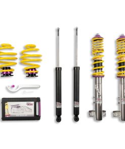 The KW Variant 1 INOX-LINE coilover kit is our entry point into our street performance lineup. The high-quality INOX-LINE stainless steel coilover struts, corrosion resistant springs, bumps stops and dampers that are optimally tuned by our engineers. The result is a balanced and sporty feel specific to each vehicle application designed for long lasting driving pleasure. With KW Variant 1 coilovers you can achieve maximum lowering within an approved lowering range that ensures a proper functioning suspension and adequate travel after your car is lowered. Even after years of use you can easily adjust the ride height thanks to the dirt resistant trapezoid thread and composite Adjustment -ollar. KW Variant 1 INOX-LINE coilover rewards the sporty driver with its pre-configured setup. For each vehicle, our engineers develop a specific damper setup and spring rate to increase the driving pleasure with an optimal balance of sportiness and practicality. As with all KW coilovers, the engineers at KW fine tune each application on the Nurburgring Nordschleife and at the KW 7-post chassis dynamics test center. Unlike a mass produced, generic coilover kit, KW coilovers are developed specifically for your vehicle. As a manufacturer, KW uses only its own resources, high quality components and the damper technology -hat was all developed in-house. With the KW Variant 1 coilovers, body roll will be reduced during compression giving you the benefit of a more genuine and direct sporty handling while driving. For over 20 years, KW automotive has been the market leader and driving innovation as a manufacturer of individual suspension solutions for the road and in all types of motorsports. No matter where in the world, gearheads, automobile manufacturers and reputable tuners rely on our KW coilovers made in Germany. With an application list comprising more than 4,600 options KW guarantees an outstanding selection backed by our Limited Lifetime Warranty.
