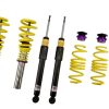 The KW Variant 1 INOX-LINE coilover kit is our entry point into our street performance lineup. The high-quality INOX-LINE stainless steel coilover struts, corrosion resistant springs, bumps stops and dampers that are optimally tuned by our engineers. The result is a balanced and sporty feel specific to each vehicle application designed for long lasting driving pleasure. With KW Variant 1 coilovers you can achieve maximum lowering within an approved lowering range that ensures a proper functioning suspension and adequate travel after your car is lowered. Even after years of use you can easily adjust the ride height thanks to the dirt resistant trapezoid thread and composite Adjustment -ollar. KW Variant 1 INOX-LINE coilover rewards the sporty driver with its pre-configured setup. For each vehicle, our engineers develop a specific damper setup and spring rate to increase the driving pleasure with an optimal balance of sportiness and practicality. As with all KW coilovers, the engineers at KW fine tune each application on the Nurburgring Nordschleife and at the KW 7-post chassis dynamics test center. Unlike a mass produced, generic coilover kit, KW coilovers are developed specifically for your vehicle. As a manufacturer, KW uses only its own resources, high quality components and the damper technology -hat was all developed in-house. With the KW Variant 1 coilovers, body roll will be reduced during compression giving you the benefit of a more genuine and direct sporty handling while driving. For over 20 years, KW automotive has been the market leader and driving innovation as a manufacturer of individual suspension solutions for the road and in all types of motorsports. No matter where in the world, gearheads, automobile manufacturers and reputable tuners rely on our KW coilovers made in Germany. With an application list comprising more than 4,600 options KW guarantees an outstanding selection backed by our Limited Lifetime Warranty.