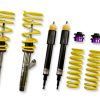 The KW Variant 1 INOX-LINE coilover kit is our entry point into our street performance lineup. The high-quality INOX-LINE stainless steel coilover struts, corrosion resistant springs, bumps stops and dampers that are optimally tuned by our engineers. The result is a balanced and sporty feel specific to each vehicle application designed for long lasting driving pleasure. With KW Variant 1 coilovers you can achieve maximum lowering within an approved lowering range that ensures a proper functioning suspension and adequate travel after your car is lowered. Even after years of use you can easily adjust the ride height thanks to the dirt resistant trapezoid thread and composite Adjustment -ollar. KW Variant 1 INOX-LINE coilover rewards the sporty driver with its pre-configured setup. For each vehicle, our engineers develop a specific damper setup and spring rate to increase the driving pleasure with an optimal balance of sportiness and practicality. As with all KW coilovers, the engineers at KW fine tune each application on the Nurburgring Nordschleife and at the KW 7-post chassis dynamics test center. Unlike a mass produced, generic coilover kit, KW coilovers are developed specifically for your vehicle. As a manufacturer, KW uses only its own resources, high quality components and the damper technology -hat was all developed in-house. With the KW Variant 1 coilovers, body roll will be reduced during compression giving you the benefit of a more genuine and direct sporty handling while driving. For over 20 years, KW automotive has been the market leader and driving innovation as a manufacturer of individual suspension solutions for the road and in all types of motorsports. No matter where in the world, gearheads, automobile manufacturers and reputable tuners rely on our KW coilovers made in Germany. With an application list comprising more than 4,600 options KW guarantees an outstanding selection backed by our Limited Lifetime Warranty.