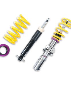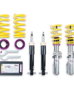 The KW Variant 1 INOX-LINE coilover kit is our entry point into our street performance lineup. The high-quality INOX-LINE stainless steel coilover struts, corrosion resistant springs, bumps stops and dampers that are optimally tuned by our engineers. The result is a balanced and sporty feel specific to each vehicle application designed for long lasting driving pleasure. With KW Variant 1 coilovers you can achieve maximum lowering within an approved lowering range that ensures a proper functioning suspension and adequate travel after your car is lowered. Even after years of use you can easily adjust the ride height thanks to the dirt resistant trapezoid thread and composite Adjustment -ollar. KW Variant 1 INOX-LINE coilover rewards the sporty driver with its pre-configured setup. For each vehicle, our engineers develop a specific damper setup and spring rate to increase the driving pleasure with an optimal balance of sportiness and practicality. As with all KW coilovers, the engineers at KW fine tune each application on the Nurburgring Nordschleife and at the KW 7-post chassis dynamics test center. Unlike a mass produced, generic coilover kit, KW coilovers are developed specifically for your vehicle. As a manufacturer, KW uses only its own resources, high quality components and the damper technology -hat was all developed in-house. With the KW Variant 1 coilovers, body roll will be reduced during compression giving you the benefit of a more genuine and direct sporty handling while driving. For over 20 years, KW automotive has been the market leader and driving innovation as a manufacturer of individual suspension solutions for the road and in all types of motorsports. No matter where in the world, gearheads, automobile manufacturers and reputable tuners rely on our KW coilovers made in Germany. With an application list comprising more than 4,600 options KW guarantees an outstanding selection backed by our Limited Lifetime Warranty.
