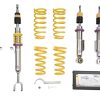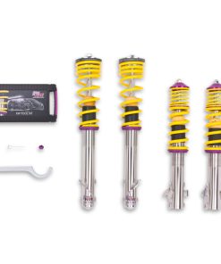 The KW Variant 1 INOX-LINE coilover kit is our entry point into our street performance lineup. The high-quality INOX-LINE stainless steel coilover struts, corrosion resistant springs, bumps stops and dampers that are optimally tuned by our engineers. The result is a balanced and sporty feel specific to each vehicle application designed for long lasting driving pleasure. With KW Variant 1 coilovers you can achieve maximum lowering within an approved lowering range that ensures a proper functioning suspension and adequate travel after your car is lowered. Even after years of use you can easily adjust the ride height thanks to the dirt resistant trapezoid thread and composite Adjustment -ollar. KW Variant 1 INOX-LINE coilover rewards the sporty driver with its pre-configured setup. For each vehicle, our engineers develop a specific damper setup and spring rate to increase the driving pleasure with an optimal balance of sportiness and practicality. As with all KW coilovers, the engineers at KW fine tune each application on the Nurburgring Nordschleife and at the KW 7-post chassis dynamics test center. Unlike a mass produced, generic coilover kit, KW coilovers are developed specifically for your vehicle. As a manufacturer, KW uses only its own resources, high quality components and the damper technology -hat was all developed in-house. With the KW Variant 1 coilovers, body roll will be reduced during compression giving you the benefit of a more genuine and direct sporty handling while driving. For over 20 years, KW automotive has been the market leader and driving innovation as a manufacturer of individual suspension solutions for the road and in all types of motorsports. No matter where in the world, gearheads, automobile manufacturers and reputable tuners rely on our KW coilovers made in Germany. With an application list comprising more than 4,600 options KW guarantees an outstanding selection backed by our Limited Lifetime Warranty.