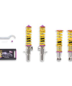 The KW Variant 1 INOX-LINE coilover kit is our entry point into our street performance lineup. The high-quality INOX-LINE stainless steel coilover struts, corrosion resistant springs, bumps stops and dampers that are optimally tuned by our engineers. The result is a balanced and sporty feel specific to each vehicle application designed for long lasting driving pleasure. With KW Variant 1 coilovers you can achieve maximum lowering within an approved lowering range that ensures a proper functioning suspension and adequate travel after your car is lowered. Even after years of use you can easily adjust the ride height thanks to the dirt resistant trapezoid thread and composite Adjustment -ollar. KW Variant 1 INOX-LINE coilover rewards the sporty driver with its pre-configured setup. For each vehicle, our engineers develop a specific damper setup and spring rate to increase the driving pleasure with an optimal balance of sportiness and practicality. As with all KW coilovers, the engineers at KW fine tune each application on the Nurburgring Nordschleife and at the KW 7-post chassis dynamics test center. Unlike a mass produced, generic coilover kit, KW coilovers are developed specifically for your vehicle. As a manufacturer, KW uses only its own resources, high quality components and the damper technology -hat was all developed in-house. With the KW Variant 1 coilovers, body roll will be reduced during compression giving you the benefit of a more genuine and direct sporty handling while driving. For over 20 years, KW automotive has been the market leader and driving innovation as a manufacturer of individual suspension solutions for the road and in all types of motorsports. No matter where in the world, gearheads, automobile manufacturers and reputable tuners rely on our KW coilovers made in Germany. With an application list comprising more than 4,600 options KW guarantees an outstanding selection backed by our Limited Lifetime Warranty.