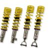 The KW Variant 1 INOX-LINE coilover kit is our entry point into our street performance lineup. The high-quality INOX-LINE stainless steel coilover struts, corrosion resistant springs, bumps stops and dampers that are optimally tuned by our engineers. The result is a balanced and sporty feel specific to each vehicle application designed for long lasting driving pleasure. With KW Variant 1 coilovers you can achieve maximum lowering within an approved lowering range that ensures a proper functioning suspension and adequate travel after your car is lowered. Even after years of use you can easily adjust the ride height thanks to the dirt resistant trapezoid thread and composite Adjustment -ollar. KW Variant 1 INOX-LINE coilover rewards the sporty driver with its pre-configured setup. For each vehicle, our engineers develop a specific damper setup and spring rate to increase the driving pleasure with an optimal balance of sportiness and practicality. As with all KW coilovers, the engineers at KW fine tune each application on the Nurburgring Nordschleife and at the KW 7-post chassis dynamics test center. Unlike a mass produced, generic coilover kit, KW coilovers are developed specifically for your vehicle. As a manufacturer, KW uses only its own resources, high quality components and the damper technology -hat was all developed in-house. With the KW Variant 1 coilovers, body roll will be reduced during compression giving you the benefit of a more genuine and direct sporty handling while driving. For over 20 years, KW automotive has been the market leader and driving innovation as a manufacturer of individual suspension solutions for the road and in all types of motorsports. No matter where in the world, gearheads, automobile manufacturers and reputable tuners rely on our KW coilovers made in Germany. With an application list comprising more than 4,600 options KW guarantees an outstanding selection backed by our Limited Lifetime Warranty.