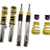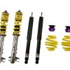 The KW Variant 1 INOX-LINE coilover kit is our entry point into our street performance lineup. The high-quality INOX-LINE stainless steel coilover struts, corrosion resistant springs, bumps stops and dampers that are optimally tuned by our engineers. The result is a balanced and sporty feel specific to each vehicle application designed for long lasting driving pleasure. With KW Variant 1 coilovers you can achieve maximum lowering within an approved lowering range that ensures a proper functioning suspension and adequate travel after your car is lowered. Even after years of use you can easily adjust the ride height thanks to the dirt resistant trapezoid thread and composite Adjustment -ollar. KW Variant 1 INOX-LINE coilover rewards the sporty driver with its pre-configured setup. For each vehicle, our engineers develop a specific damper setup and spring rate to increase the driving pleasure with an optimal balance of sportiness and practicality. As with all KW coilovers, the engineers at KW fine tune each application on the Nurburgring Nordschleife and at the KW 7-post chassis dynamics test center. Unlike a mass produced, generic coilover kit, KW coilovers are developed specifically for your vehicle. As a manufacturer, KW uses only its own resources, high quality components and the damper technology -hat was all developed in-house. With the KW Variant 1 coilovers, body roll will be reduced during compression giving you the benefit of a more genuine and direct sporty handling while driving. For over 20 years, KW automotive has been the market leader and driving innovation as a manufacturer of individual suspension solutions for the road and in all types of motorsports. No matter where in the world, gearheads, automobile manufacturers and reputable tuners rely on our KW coilovers made in Germany. With an application list comprising more than 4,600 options KW guarantees an outstanding selection backed by our Limited Lifetime Warranty.