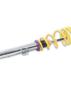 KW Variant 2 INOX-LINE coilovers are the perfect solution for drivers who want more than just outstanding looks and adjustable ride height. In addition to stainless steel coilover struts, and corrosion-resistant components built for long term durability, KW Variant 2 coilovers utilize TVR-A (Twin Valve Rebound – Adjustable) technology -o allow Adjustment -f the rebound damping characteristics with 16 clicks so you can fine tune the ride comfort or performance to your satisfaction. As with all KW coilovers our engineers develop vehicle specific damper settings that undergo comprehensive testing on the Nurburgring Nordschleife and in our KW 7-post Driving Dynamic Test Center. With a KW coilover kit the driving experience is more dynamic and direct. With the rebound adjustability you have more direct influence on the handling or comfort of the car. With 16 precise clicks you can adjust the KW dampers (more firm or more comfortable) without affecting the compression damping fine-tuned by our engineers. The two-stage, patented TVR-A (Twin Valve Rebound – Adjustable) technology -nables a small volume of oil flow through an adjustable, conically shaped, low-speed bypass during low damper speeds, while at high damper speeds, the main rebound stage valve opens allowing a larger volume of oil to flow. This provides a big improvement in terms of ride comfort without influencing the high-speed range. There are 16 precise clicks available for individual settings, so you can choose between more comfort or more body control. For over 20 years, KW automotive has been the market leader and driving innovation as a manufacturer of individual suspension solutions for the road and in all types of motorsports. No matter where in the world, gearheads, automobile manufacturers and reputable tuners rely on our KW coilovers made in Germany. With an application list comprising more than 4,600 options KW guarantees an outstanding selection backed by our Limited Lifetime Warranty.
