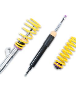 KW Variant 2 INOX-LINE coilovers are the perfect solution for drivers who want more than just outstanding looks and adjustable ride height. In addition to stainless steel coilover struts, and corrosion-resistant components built for long term durability, KW Variant 2 coilovers utilize TVR-A (Twin Valve Rebound – Adjustable) technology -o allow Adjustment -f the rebound damping characteristics with 16 clicks so you can fine tune the ride comfort or performance to your satisfaction. As with all KW coilovers our engineers develop vehicle specific damper settings that undergo comprehensive testing on the Nurburgring Nordschleife and in our KW 7-post Driving Dynamic Test Center. With a KW coilover kit the driving experience is more dynamic and direct. With the rebound adjustability you have more direct influence on the handling or comfort of the car. With 16 precise clicks you can adjust the KW dampers (more firm or more comfortable) without affecting the compression damping fine-tuned by our engineers. The two-stage, patented TVR-A (Twin Valve Rebound – Adjustable) technology -nables a small volume of oil flow through an adjustable, conically shaped, low-speed bypass during low damper speeds, while at high damper speeds, the main rebound stage valve opens allowing a larger volume of oil to flow. This provides a big improvement in terms of ride comfort without influencing the high-speed range. There are 16 precise clicks available for individual settings, so you can choose between more comfort or more body control. For over 20 years, KW automotive has been the market leader and driving innovation as a manufacturer of individual suspension solutions for the road and in all types of motorsports. No matter where in the world, gearheads, automobile manufacturers and reputable tuners rely on our KW coilovers made in Germany. With an application list comprising more than 4,600 options KW guarantees an outstanding selection backed by our Limited Lifetime Warranty.