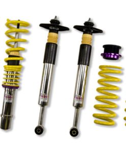 KW Variant 2 INOX-LINE coilovers are the perfect solution for drivers who want more than just outstanding looks and adjustable ride height. In addition to stainless steel coilover struts, and corrosion-resistant components built for long term durability, KW Variant 2 coilovers utilize TVR-A (Twin Valve Rebound – Adjustable) technology -o allow Adjustment -f the rebound damping characteristics with 16 clicks so you can fine tune the ride comfort or performance to your satisfaction. As with all KW coilovers our engineers develop vehicle specific damper settings that undergo comprehensive testing on the Nurburgring Nordschleife and in our KW 7-post Driving Dynamic Test Center. With a KW coilover kit the driving experience is more dynamic and direct. With the rebound adjustability you have more direct influence on the handling or comfort of the car. With 16 precise clicks you can adjust the KW dampers (more firm or more comfortable) without affecting the compression damping fine-tuned by our engineers. The two-stage, patented TVR-A (Twin Valve Rebound – Adjustable) technology -nables a small volume of oil flow through an adjustable, conically shaped, low-speed bypass during low damper speeds, while at high damper speeds, the main rebound stage valve opens allowing a larger volume of oil to flow. This provides a big improvement in terms of ride comfort without influencing the high-speed range. There are 16 precise clicks available for individual settings, so you can choose between more comfort or more body control. For over 20 years, KW automotive has been the market leader and driving innovation as a manufacturer of individual suspension solutions for the road and in all types of motorsports. No matter where in the world, gearheads, automobile manufacturers and reputable tuners rely on our KW coilovers made in Germany. With an application list comprising more than 4,600 options KW guarantees an outstanding selection backed by our Limited Lifetime Warranty.