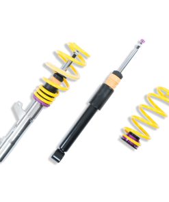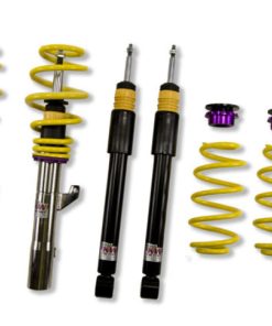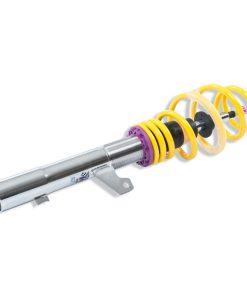 KW Variant 2 INOX-LINE coilovers are the perfect solution for drivers who want more than just outstanding looks and adjustable ride height. In addition to stainless steel coilover struts, and corrosion-resistant components built for long term durability, KW Variant 2 coilovers utilize TVR-A (Twin Valve Rebound – Adjustable) technology -o allow Adjustment -f the rebound damping characteristics with 16 clicks so you can fine tune the ride comfort or performance to your satisfaction. As with all KW coilovers our engineers develop vehicle specific damper settings that undergo comprehensive testing on the Nurburgring Nordschleife and in our KW 7-post Driving Dynamic Test Center. With a KW coilover kit the driving experience is more dynamic and direct. With the rebound adjustability you have more direct influence on the handling or comfort of the car. With 16 precise clicks you can adjust the KW dampers (more firm or more comfortable) without affecting the compression damping fine-tuned by our engineers. The two-stage, patented TVR-A (Twin Valve Rebound – Adjustable) technology -nables a small volume of oil flow through an adjustable, conically shaped, low-speed bypass during low damper speeds, while at high damper speeds, the main rebound stage valve opens allowing a larger volume of oil to flow. This provides a big improvement in terms of ride comfort without influencing the high-speed range. There are 16 precise clicks available for individual settings, so you can choose between more comfort or more body control. For over 20 years, KW automotive has been the market leader and driving innovation as a manufacturer of individual suspension solutions for the road and in all types of motorsports. No matter where in the world, gearheads, automobile manufacturers and reputable tuners rely on our KW coilovers made in Germany. With an application list comprising more than 4,600 options KW guarantees an outstanding selection backed by our Limited Lifetime Warranty.