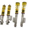 KW Street Comfort INOX-LINE coilovers are the perfect solution for drivers who want maximum ride comfort and a more discreet lowering range. In addition to stainless steel coilover struts, and corrosion-resistant components built for long term durability, KW Street Comfort coilovers utilize TVR-A (Twin Valve Rebound – Adjustable) technology -o allow Adjustment -f the rebound damping characteristics with 16 clicks so you can fine tune the ride comfort to your satisfaction. As with all KW coilovers our engineers develop vehicle specific damper settings that undergo comprehensive testing on the vehicles and in our KW 7-post Driving Dynamic Test Center. With a KW Street Comfort coilover kit the driving experience is tailored for absolute comfort. With the rebound adjustability you have direct influence on the handling and comfort of the car. With 16 precise clicks you can adjust the KW dampers (more firm or more comfortable) without affecting the compression damping fine-tuned by our engineers. The two-stage, patented TVR-A (Twin Valve Rebound – Adjustable) technology -nables a small volume of oil flow through an adjustable, conically shaped, low-speed bypass during low damper speeds, while at high damper speeds, the main rebound stage valve opens allowing a larger volume of oil to flow. This provides a big improvement in terms of ride comfort without influencing the high-speed range. There are 16 precise clicks available for individual settings, so you can choose between more comfort or more body control. For over 20 years, KW automotive has been the market leader and driving innovation as a manufacturer of individual suspension solutions for the road and in all types of motorsports. No matter where in the world, gearheads, automobile manufacturers and reputable tuners rely on our KW coilovers made in Germany. With an application list comprising more than 4,600 options KW guarantees an outstanding selection backed by our Limited Lifetime Warranty.