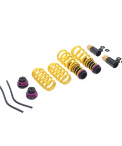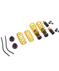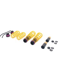 KW (H.A.S) Height Adjustable Spring kits are a great alternative to conventional lowering springs. You are no longer stuck with a fixed lowering height. KW H.A.S. systems allow you to adjust the vehicle ride height with the KW height adjuster even after the kit has been installed. Your vehicle not only gets a more dynamic look, but also the steering behavior and response of the standard dampers becomes more agile. All driver assistance systems and comfort features of a factory adaptive or electronic suspension remain operational and work harmoniously with our vehicle specific spring set up. KW uses high-quality springs made of chrome-silicon steel with spring rates designed specifically for each respective OE suspension damper and wheel load. KW’s expertise and engineering ensure the spring rates will pair perfectly with the different damper characteristics of your factory adaptive electronic suspension. Along with the use of high quality materials and the included KW ride height Adjustment -echanisms, our KW H.A.S. kits always includes the vehicle-specific bump stops with dust protection system to protect your factory suspension against wear & tear caused by road grime and debris. Similar to a coilover suspension, the KW H.A.S kit allow a continuous adjustable ride height within a tested range, something not possible with conventional lowering springs. The dust protection elements and spring perches included in the delivery, when applicable, are always adjusted to the maximum technically possible lowering, typically limited by the factory dampers. With KW height adjustable springs, a sporty and harmonious driving behavior can be achieved without the driving dynamics of performance-oriented vehicles suffering. As with all KW suspension products our engineers develop vehicle specific parameters and spring specifications which undergo comprehensive testing on the Nurburgring Nordschleife and in our KW 7-post Driving Dynamic Test Center.