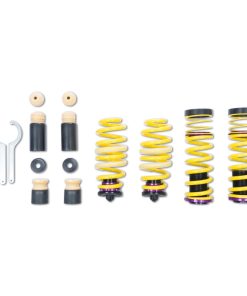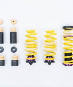 KW (H.A.S) Height Adjustable Spring kits are a great alternative to conventional lowering springs. You are no longer stuck with a fixed lowering height. KW H.A.S. systems allow you to adjust the vehicle ride height with the KW height adjuster even after the kit has been installed. Your vehicle not only gets a more dynamic look, but also the steering behavior and response of the standard dampers becomes more agile. All driver assistance systems and comfort features of a factory adaptive or electronic suspension remain operational and work harmoniously with our vehicle specific spring set up. KW uses high-quality springs made of chrome-silicon steel with spring rates designed specifically for each respective OE suspension damper and wheel load. KW’s expertise and engineering ensure the spring rates will pair perfectly with the different damper characteristics of your factory adaptive electronic suspension. Along with the use of high quality materials and the included KW ride height Adjustment -echanisms, our KW H.A.S. kits always includes the vehicle-specific bump stops with dust protection system to protect your factory suspension against wear & tear caused by road grime and debris. Similar to a coilover suspension, the KW H.A.S kit allow a continuous adjustable ride height within a tested range, something not possible with conventional lowering springs. The dust protection elements and spring perches included in the delivery, when applicable, are always adjusted to the maximum technically possible lowering, typically limited by the factory dampers. With KW height adjustable springs, a sporty and harmonious driving behavior can be achieved without the driving dynamics of performance-oriented vehicles suffering. As with all KW suspension products our engineers develop vehicle specific parameters and spring specifications which undergo comprehensive testing on the Nurburgring Nordschleife and in our KW 7-post Driving Dynamic Test Center.
