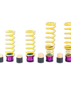 KW (H.A.S) Height Adjustable Spring kits are a great alternative to conventional lowering springs. You are no longer stuck with a fixed lowering height. KW H.A.S. systems allow you to adjust the vehicle ride height with the KW height adjuster even after the kit has been installed. Your vehicle not only gets a more dynamic look, but also the steering behavior and response of the standard dampers becomes more agile. All driver assistance systems and comfort features of a factory adaptive or electronic suspension remain operational and work harmoniously with our vehicle specific spring set up. KW uses high-quality springs made of chrome-silicon steel with spring rates designed specifically for each respective OE suspension damper and wheel load. KW’s expertise and engineering ensure the spring rates will pair perfectly with the different damper characteristics of your factory adaptive electronic suspension. Along with the use of high quality materials and the included KW ride height Adjustment -echanisms, our KW H.A.S. kits always includes the vehicle-specific bump stops with dust protection system to protect your factory suspension against wear & tear caused by road grime and debris. Similar to a coilover suspension, the KW H.A.S kit allow a continuous adjustable ride height within a tested range, something not possible with conventional lowering springs. The dust protection elements and spring perches included in the delivery, when applicable, are always adjusted to the maximum technically possible lowering, typically limited by the factory dampers. With KW height adjustable springs, a sporty and harmonious driving behavior can be achieved without the driving dynamics of performance-oriented vehicles suffering. As with all KW suspension products our engineers develop vehicle specific parameters and spring specifications which undergo comprehensive testing on the Nurburgring Nordschleife and in our KW 7-post Driving Dynamic Test Center.
