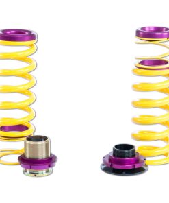 KW (H.A.S) Height Adjustable Spring kits are a great alternative to conventional lowering springs. You are no longer stuck with a fixed lowering height. KW H.A.S. systems allow you to adjust the vehicle ride height with the KW height adjuster even after the kit has been installed. Your vehicle not only gets a more dynamic look, but also the steering behavior and response of the standard dampers becomes more agile. All driver assistance systems and comfort features of a factory adaptive or electronic suspension remain operational and work harmoniously with our vehicle specific spring set up. KW uses high-quality springs made of chrome-silicon steel with spring rates designed specifically for each respective OE suspension damper and wheel load. KW’s expertise and engineering ensure the spring rates will pair perfectly with the different damper characteristics of your factory adaptive electronic suspension. Along with the use of high quality materials and the included KW ride height Adjustment -echanisms, our KW H.A.S. kits always includes the vehicle-specific bump stops with dust protection system to protect your factory suspension against wear & tear caused by road grime and debris. Similar to a coilover suspension, the KW H.A.S kit allow a continuous adjustable ride height within a tested range, something not possible with conventional lowering springs. The dust protection elements and spring perches included in the delivery, when applicable, are always adjusted to the maximum technically possible lowering, typically limited by the factory dampers. With KW height adjustable springs, a sporty and harmonious driving behavior can be achieved without the driving dynamics of performance-oriented vehicles suffering. As with all KW suspension products our engineers develop vehicle specific parameters and spring specifications which undergo comprehensive testing on the Nurburgring Nordschleife and in our KW 7-post Driving Dynamic Test Center.