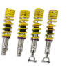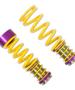 KW (H.A.S) Height Adjustable Spring kits are a great alternative to conventional lowering springs. You are no longer stuck with a fixed lowering height. KW H.A.S. systems allow you to adjust the vehicle ride height with the KW height adjuster even after the kit has been installed. Your vehicle not only gets a more dynamic look, but also the steering behavior and response of the standard dampers becomes more agile. All driver assistance systems and comfort features of a factory adaptive or electronic suspension remain operational and work harmoniously with our vehicle specific spring set up. KW uses high-quality springs made of chrome-silicon steel with spring rates designed specifically for each respective OE suspension damper and wheel load. KW’s expertise and engineering ensure the spring rates will pair perfectly with the different damper characteristics of your factory adaptive electronic suspension. Along with the use of high quality materials and the included KW ride height Adjustment -echanisms, our KW H.A.S. kits always includes the vehicle-specific bump stops with dust protection system to protect your factory suspension against wear & tear caused by road grime and debris. Similar to a coilover suspension, the KW H.A.S kit allow a continuous adjustable ride height within a tested range, something not possible with conventional lowering springs. The dust protection elements and spring perches included in the delivery, when applicable, are always adjusted to the maximum technically possible lowering, typically limited by the factory dampers. With KW height adjustable springs, a sporty and harmonious driving behavior can be achieved without the driving dynamics of performance-oriented vehicles suffering. As with all KW suspension products our engineers develop vehicle specific parameters and spring specifications which undergo comprehensive testing on the Nurburgring Nordschleife and in our KW 7-post Driving Dynamic Test Center.