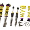 Cutting-edge motorsports technology -or more performance on the road. Like every suspension product developed by KW automotive and manufactured in Germany, the KW Variant 3 Coilover suspension kit also provides a significant improvment on the road. Thanks to the high-quality dampers, springs, and elastomer spring elements, pitching and rolling movements during load changes such as evasive maneuvers, cornering, acceleration, and braking are significantly reduced. The braking distances are also shortened. Thanks to improved support and feedback, drivers not only feel more confident but driving in everyday life is improved. With compression and rebound stage damping, that can be set separately and independently of each other, the damper setup can be customized to your personal driving preferences or vehicle changes such as weight, tire characteristics, or altered vehicle rigidity. True performance optimization is only possible with this unique, patented system. For example, this allows the compression damping force to be increased and get more grip from the tires, to improve cornering behavior and reduce squat without simultaneously altering the rebound stage damping which is optimally matched to the spring rate ? a scenario which results in reduced grip and the associated loss of performance. The KW Variant 3 INOX-LINE coilover kit is the ideal tool for performance-oriented drivers and experienced tuning enthusiasts who place a strong emphasis on the overall performance of their suspension. The Variant 3 features patented TVR-A and TVC-A technology -hat provides separately adjustable rebound and compression damping. The extensive Adjustment -ange of the independently configurable rebound and compression make it easy to directly influence the steering behavior, directional stability, grip and handling characteristics for confident and repeatable results at the limit of driving dynamics.