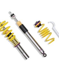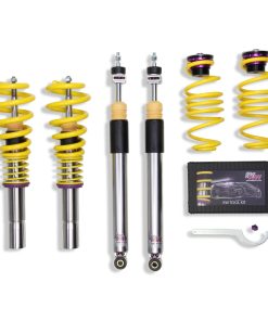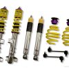 Cutting-edge motorsports technology -or more performance on the road. Like every suspension product developed by KW automotive and manufactured in Germany, the KW Variant 3 Coilover suspension kit also provides a significant improvment on the road. Thanks to the high-quality dampers, springs, and elastomer spring elements, pitching and rolling movements during load changes such as evasive maneuvers, cornering, acceleration, and braking are significantly reduced. The braking distances are also shortened. Thanks to improved support and feedback, drivers not only feel more confident but driving in everyday life is improved. With compression and rebound stage damping, that can be set separately and independently of each other, the damper setup can be customized to your personal driving preferences or vehicle changes such as weight, tire characteristics, or altered vehicle rigidity. True performance optimization is only possible with this unique, patented system. For example, this allows the compression damping force to be increased and get more grip from the tires, to improve cornering behavior and reduce squat without simultaneously altering the rebound stage damping which is optimally matched to the spring rate ? a scenario which results in reduced grip and the associated loss of performance. The KW Variant 3 INOX-LINE coilover kit is the ideal tool for performance-oriented drivers and experienced tuning enthusiasts who place a strong emphasis on the overall performance of their suspension. The Variant 3 features patented TVR-A and TVC-A technology -hat provides separately adjustable rebound and compression damping. The extensive Adjustment -ange of the independently configurable rebound and compression make it easy to directly influence the steering behavior, directional stability, grip and handling characteristics for confident and repeatable results at the limit of driving dynamics.