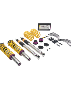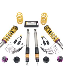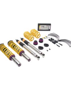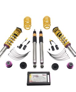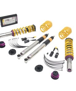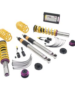 Cutting-edge motorsports technology -or more performance on the road. Like every suspension product developed by KW automotive and manufactured in Germany, the KW Variant 3 Coilover suspension kit also provides a significant improvment on the road. Thanks to the high-quality dampers, springs, and elastomer spring elements, pitching and rolling movements during load changes such as evasive maneuvers, cornering, acceleration, and braking are significantly reduced. The braking distances are also shortened. Thanks to improved support and feedback, drivers not only feel more confident but driving in everyday life is improved. With compression and rebound stage damping, that can be set separately and independently of each other, the damper setup can be customized to your personal driving preferences or vehicle changes such as weight, tire characteristics, or altered vehicle rigidity. True performance optimization is only possible with this unique, patented system. For example, this allows the compression damping force to be increased and get more grip from the tires, to improve cornering behavior and reduce squat without simultaneously altering the rebound stage damping which is optimally matched to the spring rate ? a scenario which results in reduced grip and the associated loss of performance. The KW Variant 3 INOX-LINE coilover kit is the ideal tool for performance-oriented drivers and experienced tuning enthusiasts who place a strong emphasis on the overall performance of their suspension. The Variant 3 features patented TVR-A and TVC-A technology -hat provides separately adjustable rebound and compression damping. The extensive Adjustment -ange of the independently configurable rebound and compression make it easy to directly influence the steering behavior, directional stability, grip and handling characteristics for confident and repeatable results at the limit of driving dynamics.