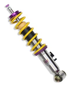 Cutting-edge motorsports technology -or more performance on the road. Like every suspension product developed by KW automotive and manufactured in Germany, the KW Variant 3 Coilover suspension kit also provides a significant improvment on the road. Thanks to the high-quality dampers, springs, and elastomer spring elements, pitching and rolling movements during load changes such as evasive maneuvers, cornering, acceleration, and braking are significantly reduced. The braking distances are also shortened. Thanks to improved support and feedback, drivers not only feel more confident but driving in everyday life is improved. With compression and rebound stage damping, that can be set separately and independently of each other, the damper setup can be customized to your personal driving preferences or vehicle changes such as weight, tire characteristics, or altered vehicle rigidity. True performance optimization is only possible with this unique, patented system. For example, this allows the compression damping force to be increased and get more grip from the tires, to improve cornering behavior and reduce squat without simultaneously altering the rebound stage damping which is optimally matched to the spring rate ? a scenario which results in reduced grip and the associated loss of performance. The KW Variant 3 INOX-LINE coilover kit is the ideal tool for performance-oriented drivers and experienced tuning enthusiasts who place a strong emphasis on the overall performance of their suspension. The Variant 3 features patented TVR-A and TVC-A technology -hat provides separately adjustable rebound and compression damping. The extensive Adjustment -ange of the independently configurable rebound and compression make it easy to directly influence the steering behavior, directional stability, grip and handling characteristics for confident and repeatable results at the limit of driving dynamics.