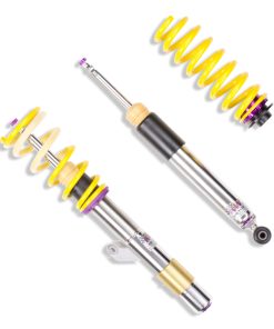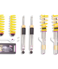 Cutting-edge motorsports technology -or more performance on the road. Like every suspension product developed by KW automotive and manufactured in Germany, the KW Variant 3 Coilover suspension kit also provides a significant improvment on the road. Thanks to the high-quality dampers, springs, and elastomer spring elements, pitching and rolling movements during load changes such as evasive maneuvers, cornering, acceleration, and braking are significantly reduced. The braking distances are also shortened. Thanks to improved support and feedback, drivers not only feel more confident but driving in everyday life is improved. With compression and rebound stage damping, that can be set separately and independently of each other, the damper setup can be customized to your personal driving preferences or vehicle changes such as weight, tire characteristics, or altered vehicle rigidity. True performance optimization is only possible with this unique, patented system. For example, this allows the compression damping force to be increased and get more grip from the tires, to improve cornering behavior and reduce squat without simultaneously altering the rebound stage damping which is optimally matched to the spring rate ? a scenario which results in reduced grip and the associated loss of performance. The KW Variant 3 INOX-LINE coilover kit is the ideal tool for performance-oriented drivers and experienced tuning enthusiasts who place a strong emphasis on the overall performance of their suspension. The Variant 3 features patented TVR-A and TVC-A technology -hat provides separately adjustable rebound and compression damping. The extensive Adjustment -ange of the independently configurable rebound and compression make it easy to directly influence the steering behavior, directional stability, grip and handling characteristics for confident and repeatable results at the limit of driving dynamics.