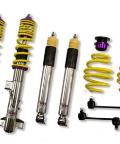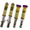 Cutting-edge motorsports technology -or more performance on the road. Like every suspension product developed by KW automotive and manufactured in Germany, the KW Variant 3 Coilover suspension kit also provides a significant improvment on the road. Thanks to the high-quality dampers, springs, and elastomer spring elements, pitching and rolling movements during load changes such as evasive maneuvers, cornering, acceleration, and braking are significantly reduced. The braking distances are also shortened. Thanks to improved support and feedback, drivers not only feel more confident but driving in everyday life is improved. With compression and rebound stage damping, that can be set separately and independently of each other, the damper setup can be customized to your personal driving preferences or vehicle changes such as weight, tire characteristics, or altered vehicle rigidity. True performance optimization is only possible with this unique, patented system. For example, this allows the compression damping force to be increased and get more grip from the tires, to improve cornering behavior and reduce squat without simultaneously altering the rebound stage damping which is optimally matched to the spring rate ? a scenario which results in reduced grip and the associated loss of performance. The KW Variant 3 INOX-LINE coilover kit is the ideal tool for performance-oriented drivers and experienced tuning enthusiasts who place a strong emphasis on the overall performance of their suspension. The Variant 3 features patented TVR-A and TVC-A technology -hat provides separately adjustable rebound and compression damping. The extensive Adjustment -ange of the independently configurable rebound and compression make it easy to directly influence the steering behavior, directional stability, grip and handling characteristics for confident and repeatable results at the limit of driving dynamics.