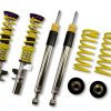 Cutting-edge motorsports technology -or more performance on the road. Like every suspension product developed by KW automotive and manufactured in Germany, the KW Variant 3 Coilover suspension kit also provides a significant improvment on the road. Thanks to the high-quality dampers, springs, and elastomer spring elements, pitching and rolling movements during load changes such as evasive maneuvers, cornering, acceleration, and braking are significantly reduced. The braking distances are also shortened. Thanks to improved support and feedback, drivers not only feel more confident but driving in everyday life is improved. With compression and rebound stage damping, that can be set separately and independently of each other, the damper setup can be customized to your personal driving preferences or vehicle changes such as weight, tire characteristics, or altered vehicle rigidity. True performance optimization is only possible with this unique, patented system. For example, this allows the compression damping force to be increased and get more grip from the tires, to improve cornering behavior and reduce squat without simultaneously altering the rebound stage damping which is optimally matched to the spring rate ? a scenario which results in reduced grip and the associated loss of performance. The KW Variant 3 INOX-LINE coilover kit is the ideal tool for performance-oriented drivers and experienced tuning enthusiasts who place a strong emphasis on the overall performance of their suspension. The Variant 3 features patented TVR-A and TVC-A technology -hat provides separately adjustable rebound and compression damping. The extensive Adjustment -ange of the independently configurable rebound and compression make it easy to directly influence the steering behavior, directional stability, grip and handling characteristics for confident and repeatable results at the limit of driving dynamics.