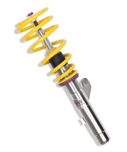 Cutting-edge motorsports technology -or more performance on the road. Like every suspension product developed by KW automotive and manufactured in Germany, the KW Variant 3 Coilover suspension kit also provides a significant improvment on the road. Thanks to the high-quality dampers, springs, and elastomer spring elements, pitching and rolling movements during load changes such as evasive maneuvers, cornering, acceleration, and braking are significantly reduced. The braking distances are also shortened. Thanks to improved support and feedback, drivers not only feel more confident but driving in everyday life is improved. With compression and rebound stage damping, that can be set separately and independently of each other, the damper setup can be customized to your personal driving preferences or vehicle changes such as weight, tire characteristics, or altered vehicle rigidity. True performance optimization is only possible with this unique, patented system. For example, this allows the compression damping force to be increased and get more grip from the tires, to improve cornering behavior and reduce squat without simultaneously altering the rebound stage damping which is optimally matched to the spring rate ? a scenario which results in reduced grip and the associated loss of performance. The KW Variant 3 INOX-LINE coilover kit is the ideal tool for performance-oriented drivers and experienced tuning enthusiasts who place a strong emphasis on the overall performance of their suspension. The Variant 3 features patented TVR-A and TVC-A technology -hat provides separately adjustable rebound and compression damping. The extensive Adjustment -ange of the independently configurable rebound and compression make it easy to directly influence the steering behavior, directional stability, grip and handling characteristics for confident and repeatable results at the limit of driving dynamics.